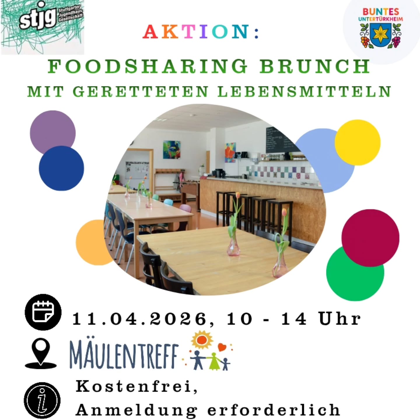 Deshalb lädt unsere Stadtteilinitiative „Buntes Untertürkheim“ am 11. April von 10 bis 14 Uhr im Mäulentreff zu einem kostenfreien Brunch mit geretteten Lebensmitteln ein.