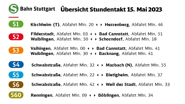 15.5.2023 – S-Bahn Stuttgart fährt nur einmal pro Stunde