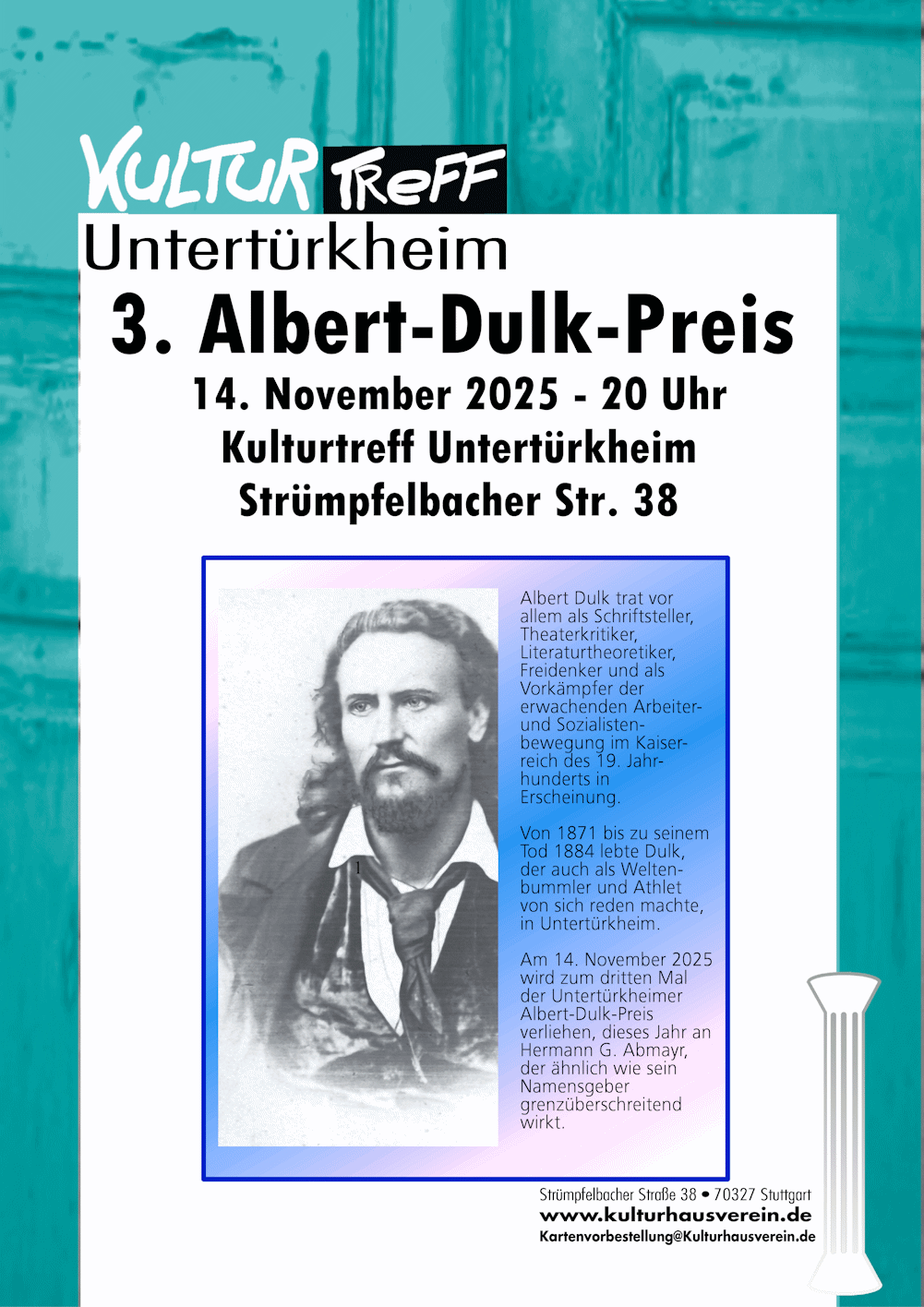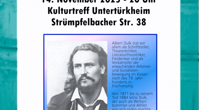 Luginsland und dem Kulturhausverein Untertürkheim ins Leben gerufene „Albert-Dulk-Preis“ verliehen – mit freundlicher Unterstützung durch die Arbeitsgemeinschaft Stadtgeschichte Stuttgart (AgS) und der Rosa-Luxemburg-Stiftung.