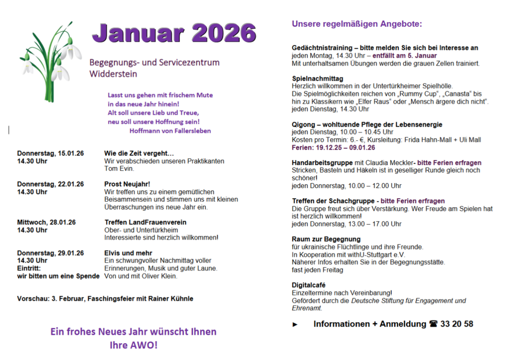 Untertürkheim Widdersteinstraße – Programm 1/2026