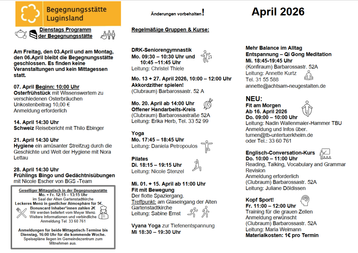 Begegnungsstätte Luginsland Programm 4+5/2026