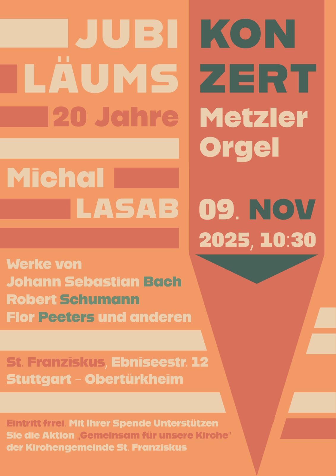 Michal Lasab wird Werke von Johann Sebastian Bach, Robert Schumann, Flor Peters und weiteren Komponisten zu Gehör bringen. Anschließend gibt es ein Weißwurstfrühstück im Gemeindezentrum. Lassen Sie sich überraschen, welche Klangvielfalt in dem barocken Instrument steckt