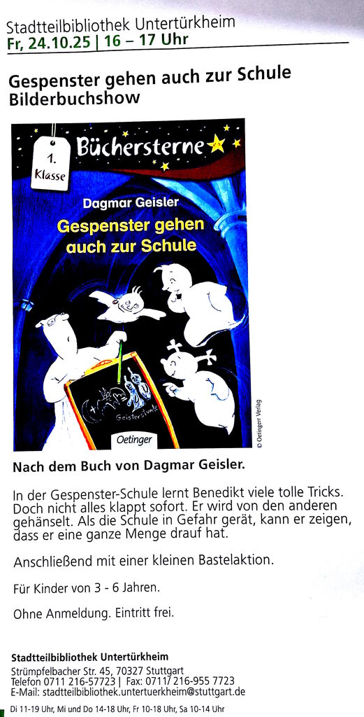 Stadtteilbibliothek Untertürkheim Fr, 24.10.25 16-17 Uhr