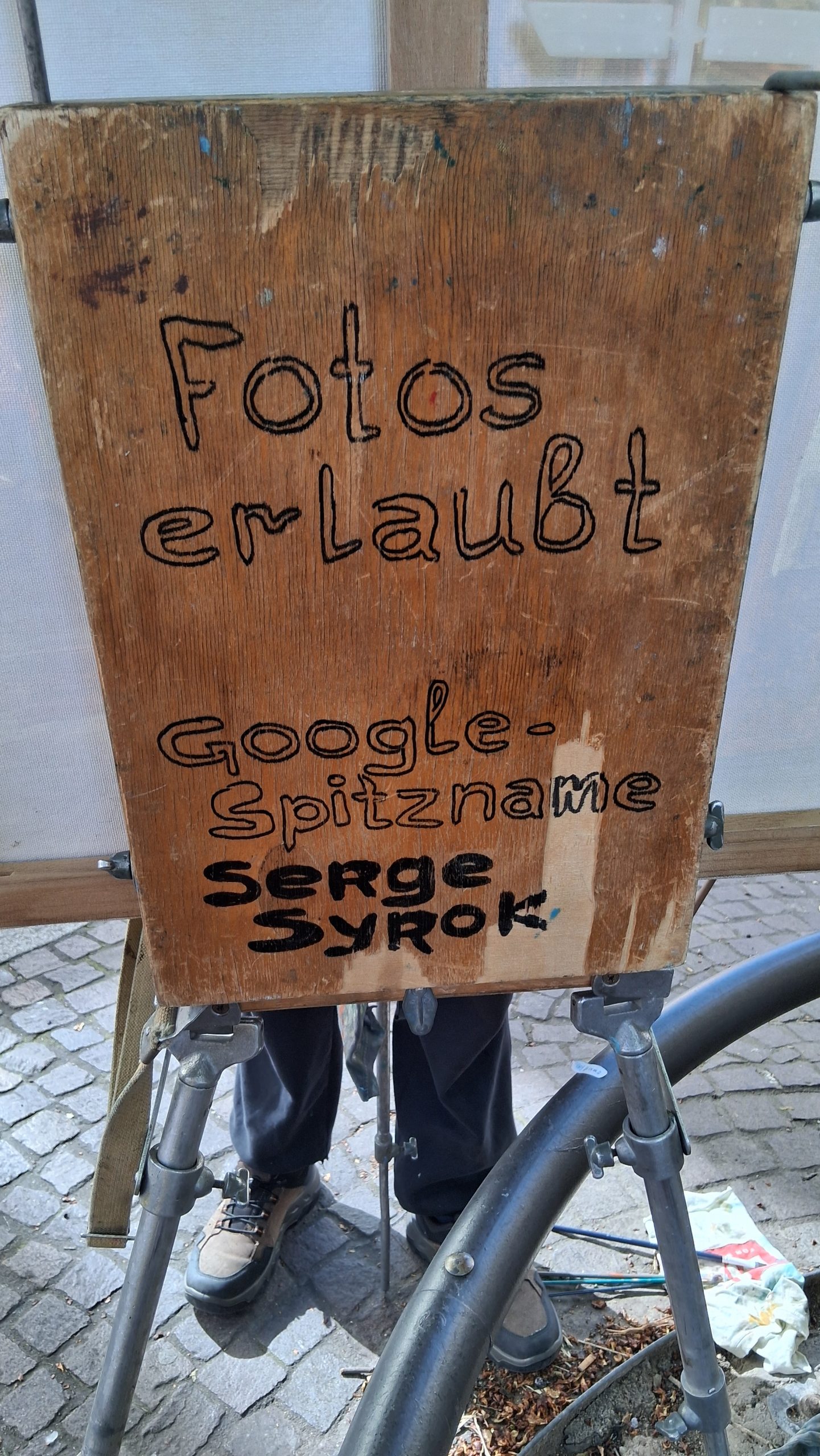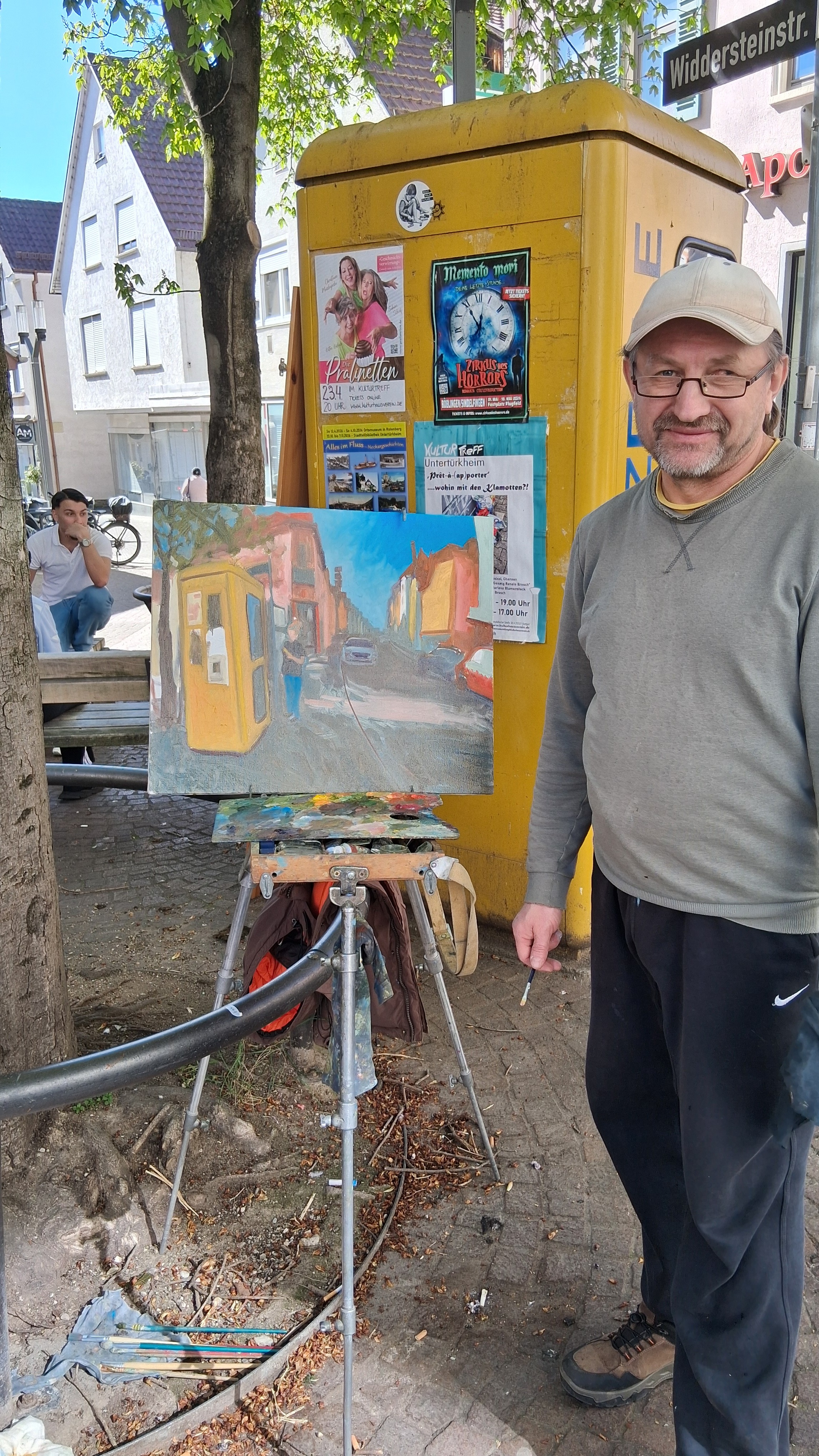 Der ukrainische Maler Serge Syrok in Untertürkheim vor der Bücherzelle.