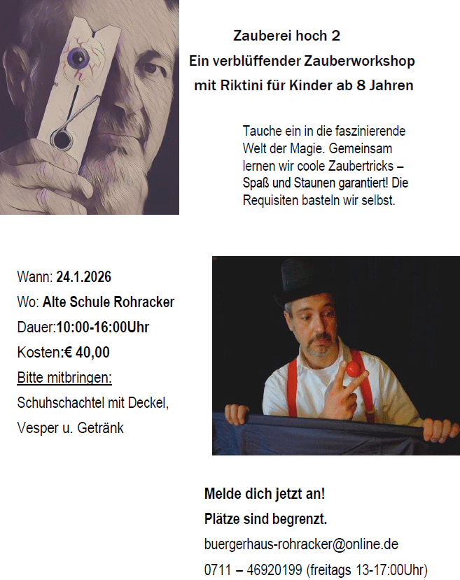 Zauberei hoch 2 – Ein verblüffender Zauberworkshop mit Riktini für Kinder ab 8 Jahren